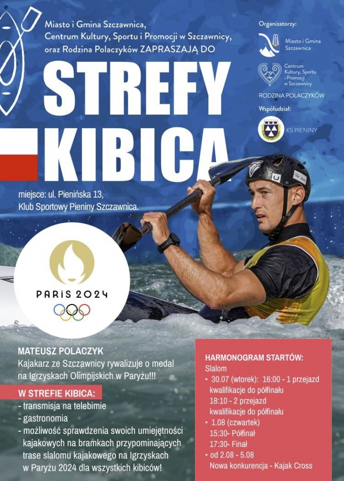 Z tej okazji przy ul. Pienińskiej 13 (Klub Sportowy Pieniny) działać będzie specjalna Strefa Kibica, w której będzie można na żywo oglądać występy kajakarza ze Szczawnicy.
