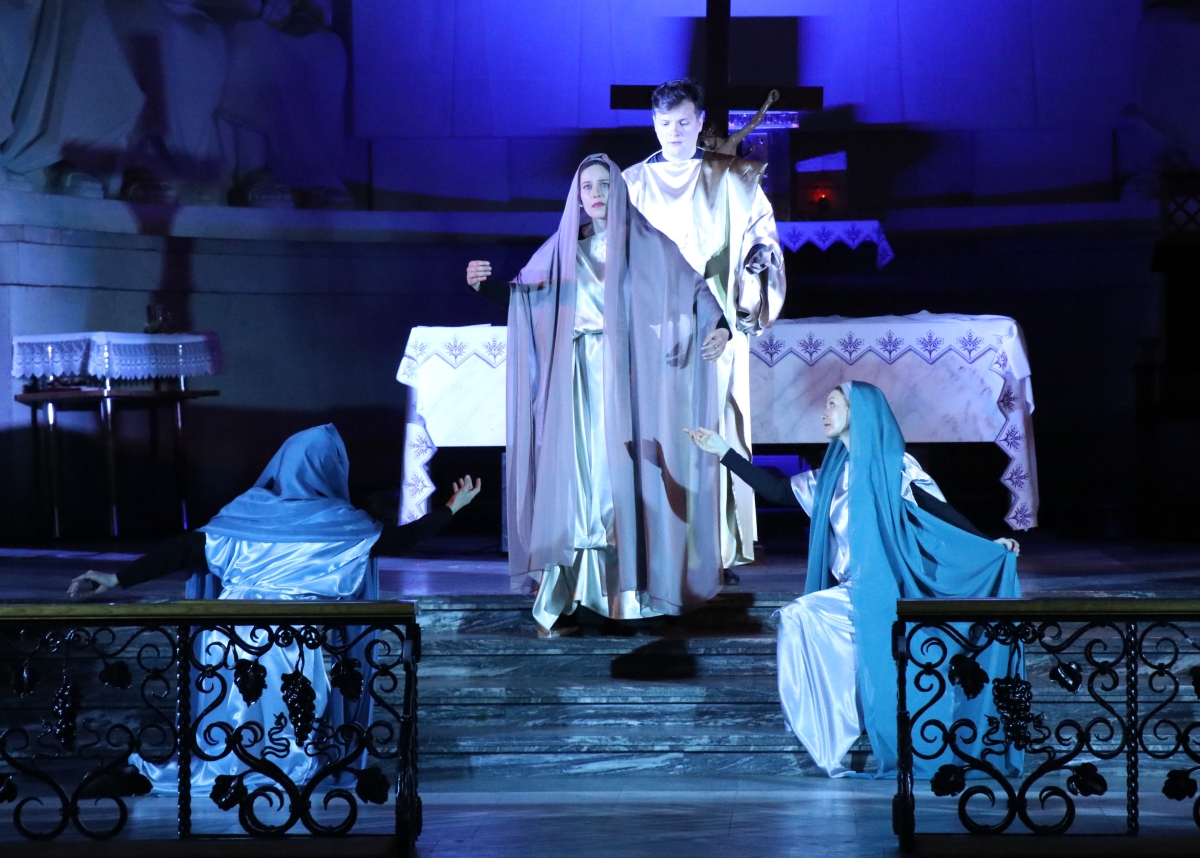 STABAT MATER - misterium sceniczne to oryginalne połączenie muzyki Antonio Vivaldiego i Giovanniego Battisty Pergolesiego z elementami gry aktorskiej, kompozycji ruchu scenicznego, oryginalnego kostiumu oraz scenografii. Widowisko zachwyca ekspresyjną i piękną w swej prostocie muzyką sakralną, przepełnioną liryką i głęboką emocjonalnością, charakterystycznymi dla neapolitańskiej szkoły operowej XVIII wieku.