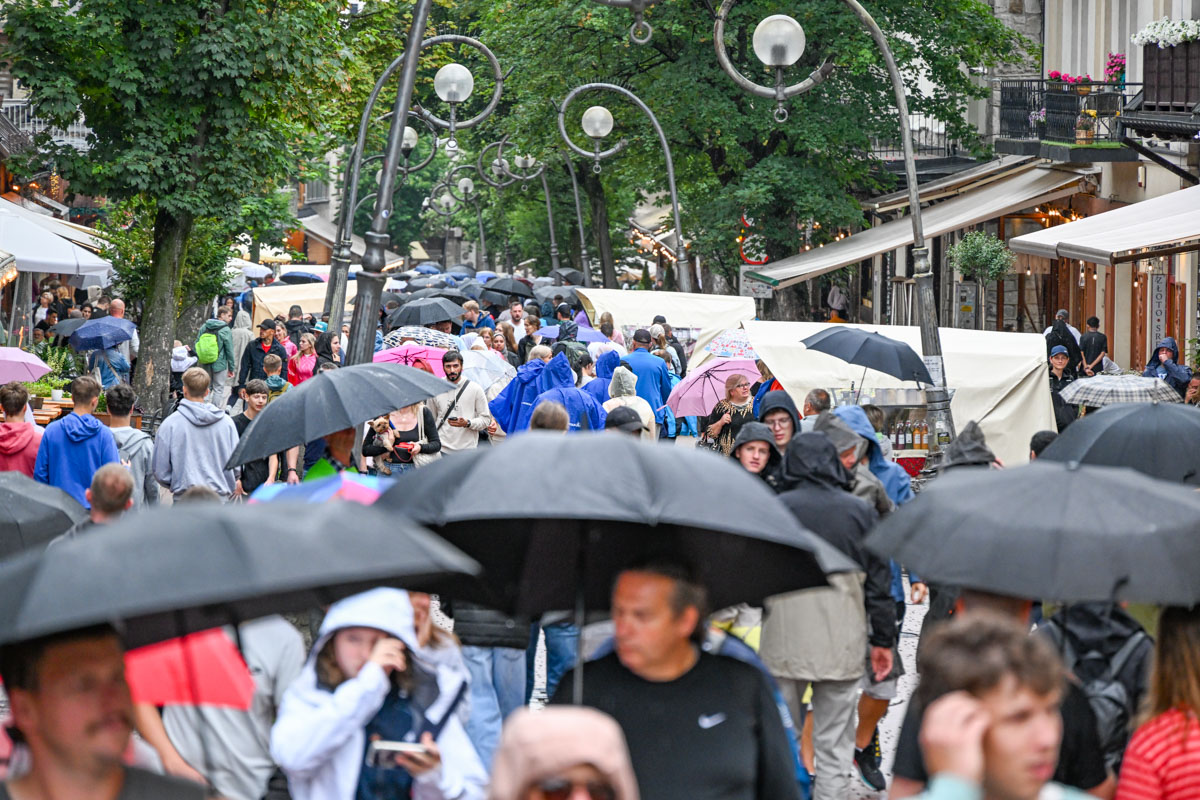 Ubrani w peleryny, z kolorowymi parasolami w dłoniach, snują się między straganami, szukając choć odrobiny wrażeń. - Miał być armagedon pogodowy, a z nieba ledwo coś kapie - komentują turyści. - Siedzimy na Krupówkach, bo już nie opłaca się wracać na kwaterę.