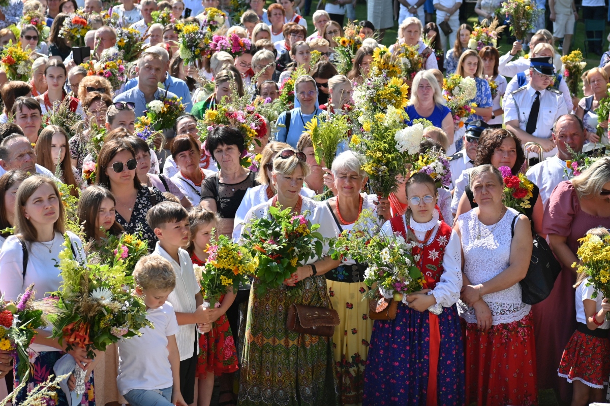 Przez cały dzień wierni przynoszą do poświęcenia wiązanki kwiatów i ziół.