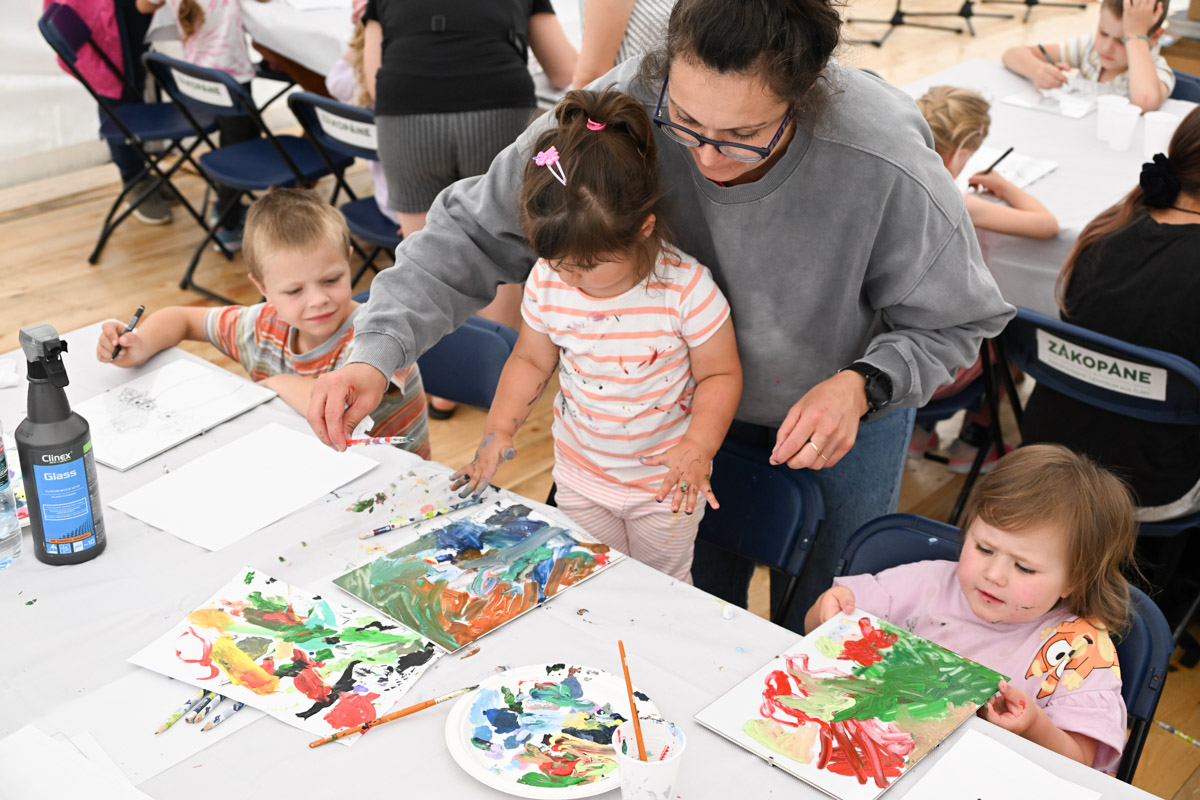Warsztaty cieszyły się dużym zainteresowaniem. Wzięło w nich udział kilkadziesiąt dzieci, a rodzice chętnie wspierali najmłodszych w tworzeniu pierwszych szkiców i odważnych pociągnięć pędzla.
