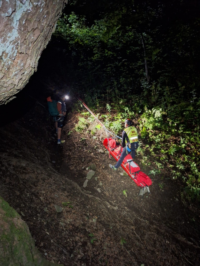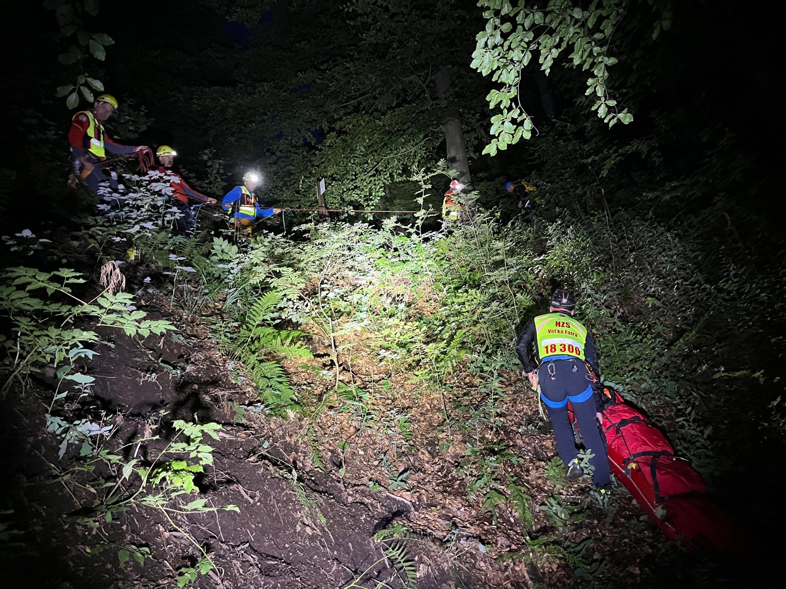 Z kolei w niedzielę wieczorem i w nocy prowadzone były dwie akcje ratunkowe. Najpierw na pomoc oczekiwała 27-letnia turystka, która spadła z trasy via ferraty "Výzva". Ponieważ znajdowała się w przewieszonym fragmencie, nie mogła samodzielnie wrócić na szlak. Ratownicy HZS ewakuowali kobietę ze skały za pomocą sprzętu linowego. Polka wisiała na ścianie przez ponad pół godziny. Została przetransportowana na noszach, przez trudny teren a potem przewieziona do szpitala.