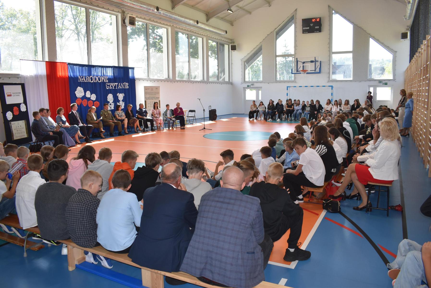 Kulminacyjnym punktem wydarzenia było wspólne czytanie wybranych fraszek, pieśni i trenów Jana Kochanowskiego. Po odczytaniu listów Andrzeja Dudy i Karola Nawrockiego-Prezydentów Rzeczypospolitej Polskiej przez Ewelinę Palenik i Stanisławę Kucek, głos zabrał uczeń szkoły Wojciech Kapuściak. W ciekawy sposób przybliżył sylwetkę Jana Kochanowskiego - autora, którego utwory wciąż poruszają, inspirują i skłaniają do refleksji nad ludzką naturą, przemijaniem oraz wartością życia.
