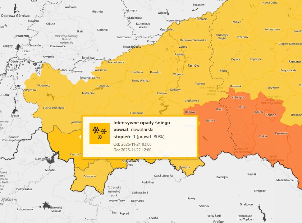 Instytut Meteorologii i Gospodarki Wodnej wydał dzisiaj ostrzeżenie meteorologiczne pierwszego stopnia obowiązujące od godz. 3 w nocy, w nocy z czwartku na piątek, do godz. 12 w sobotę.