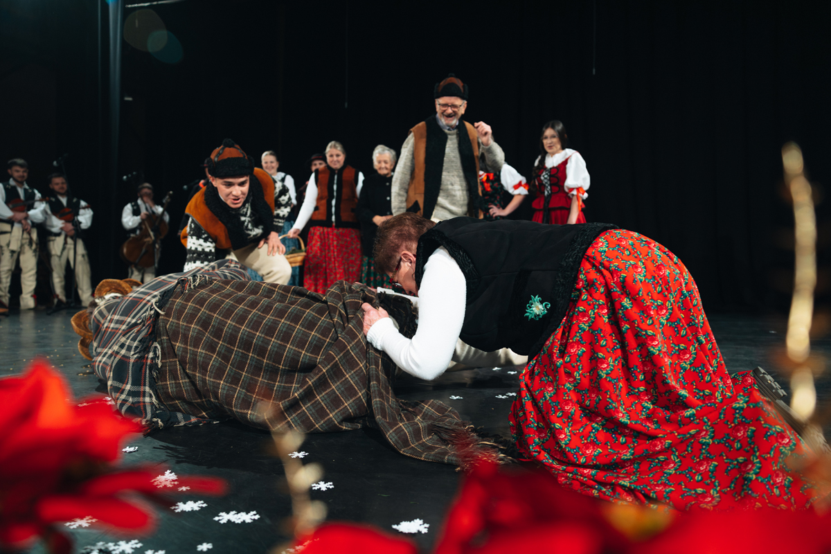 Nie zabrakło również tradycyjnego kolędowania. Zgodnie ze zwyczajem Zespół Skalniok z Zubrzycy Górnej sypał owsem na pomyślność i rok obfitości, a harcujący Turoń swoim kłapaniem paszczą i figlami wywołał salwy śmiechu u małych i dużych widzów