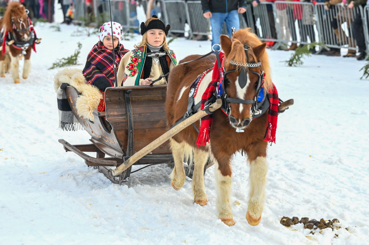 Na Bartolskim Wierchu w Zębie o godz. 11 rozpoczęła się Parada Gazdowska. Mężczyźni, kobiety i małe dzieci, w tym niemowlęta ubrane w regionalne stroje przejechały w saniach ciągniętych przez konie.