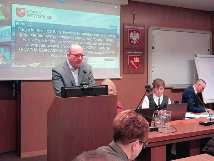 Projekt rezolucji Rady Powiatu Nowotarskiego w sprawie poparcia budowy południowej obwodnicy Nowego Targu (którą radni powiatowi przyjęli jednogłośnie) referował Robert Furca. Cały tekst publikujemy na dole strony.
