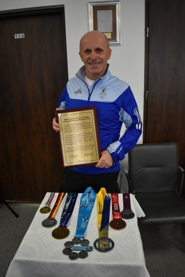 Krzysztof Wąsik został uhonorowany podczas sesji Rady Gminy Szaflary za zdobycie Korony Maratonów Świata.