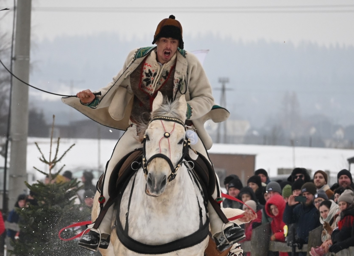 Po barwnej paradzie przyszedł czas na bardziej ekstremalne rywalizacje. Na linii startu stanęły sanie, w których siedzieli - kumoska i kumoter. Zgodnie ze zwyczajem, ciągnął ich jeden koń. Wierzchowce galopowały, kumoter popędzał konie, a kumoska dbała o to, aby sanie się nie przewróciły. Czasem jednak wywracały się razem z pasażerami na śnieżny tor.