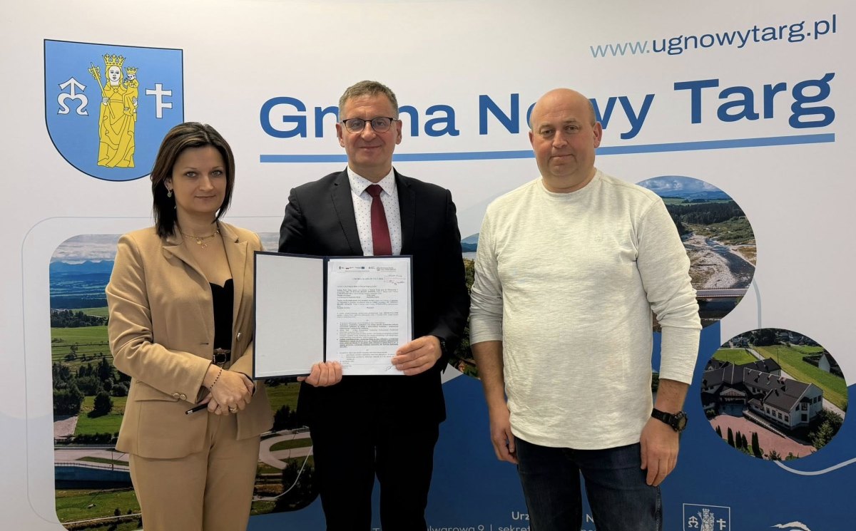 Pierwszy publiczny żłobek w Gminie Nowy Targ staje się faktem. Dziś w urzędzie gminy wójt Wiesław Parzygnat i skarbnik Katarzyna Bryja podpisali umowę z firmą budowlaną Marka Głowy na budowę placówki w Ludźmierzu, w budynku dawnej siedziby Podhalańskiej Lokalnej Grupy Działania.