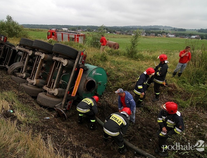Droga Rogoźniku była przez pewien czas nieprzejezdna, cysternę wydobywano z rowu za pomocą dźwigu. Kierowcy, 23-letniemu mieszkańcowi Podszkla pobrano krew do badania na zawartość alkoholu. Wcześniej badanie alkomatem pokazało u niego ponad 0,5 promila, jednak - jak mówi dyżurny - mężczyzna "poszedł w zaparte" i sam poprosił o badanie krwi.