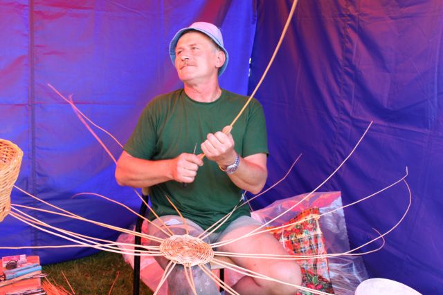 Stano Gallik przyjechał do Nowego Targu z Popradu pokazać, jak się wyplata koszyki. Chętnie o tym opowiada. Mówi, że jeden koszyk wyplata 2-3 godziny. Wiklinę zrywa nad rzeką, oczywiście trzeba wiedzieć jaką, bo nie każda się nadaje. Potem gotuje ją w wodzie, suszy, a gdy zabiera się za wyplatanie, moczy w wodzie, żeby była giętka. We wsi z której pochodzi wszyscy zajmowali się koszykarstwem. Tam się tego nauczył. Gdy wyjechał do Popradu nadal wyplatał, ale jego dzieci, jak mówi, takie wyplatanie już nie cieszy. - Czy trudno się nauczyć wyplatać? Tu chodzi o technikę, chodzi o to, żeby nie robić tego siłowo, bo można się zniechęcić i skaleczyć sobie palce - twierdzi. Mówi, żeby dotknąć jego palców. Są miękkie. Ale gdy jesienią siada do wyplatania (w wakacje zajmuje się tym głównie na pokazach), wtedy palce z każdym dniem twardnieją.