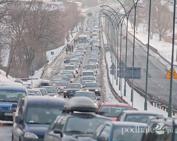 W samym Zakopanem nie ma dużych zatorów, ale samochody poruszają się w stronę Krakowa bardzo wolno. Ogonek sięga aż do Ustupu. Im bliżej Nowego Targu, tym zagęszczenie jest większe. Na dwupasmówce, a szczególnie na wyjeździe z niej, tworzy się korek, który sięga aż do skrzyżowania w Klikuszowej. Ruch posuwa się bardzo wolno, ale po przejechaniu świateł, jest już swobodniej.