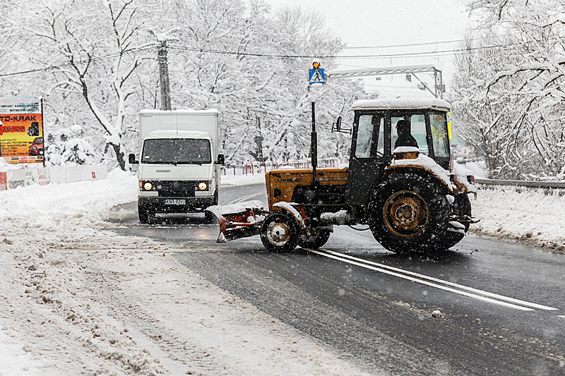 Podobnie jest na drodze w kierunku Lipnicy i Słowacji. Chodniki w większości miejscowości są odśnieżone, miejscami zalega błoto pośniegowe. Na drogi wyjechały pługi.