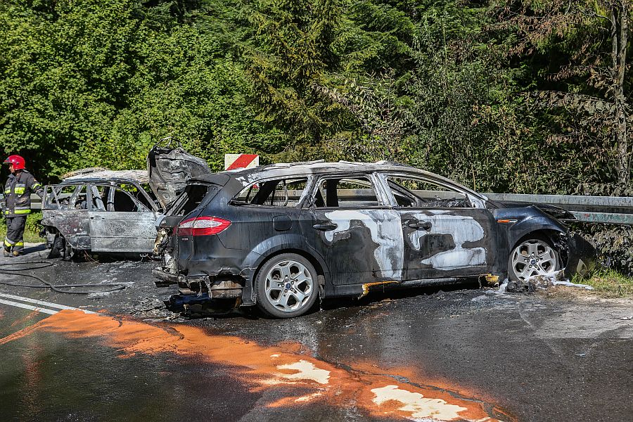 - Kierowca BMW na sądeckich numerach rejestracyjnych z niewiadomych przyczyn zjechał nagle na przeciwległy pas jezdni i zderzył się z jadącym z naprzeciwka Fordem Mondeo na śląskich numerach. Po zderzeniu samochody stanęły w płomieniach. Sześć osób z obu aut zostało rannych. Ze wstępnych ustaleń wynika, że ich obrażenia są lekkie - informuje asp. szt. Jacek Bobak z Komendy Powiatowej Policji w Nowym Targu.