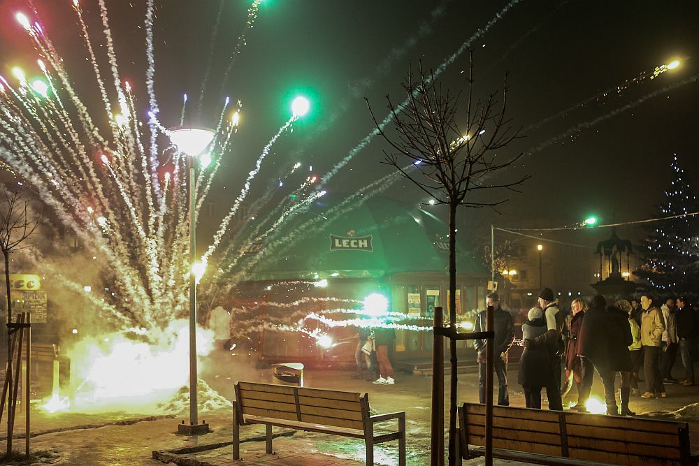 Około 300 osób przywitało Nowy Rok na nowotarskim Rynku. Byli to w większość uczestnicy zabaw w okolicznych restauracjach i klubach.