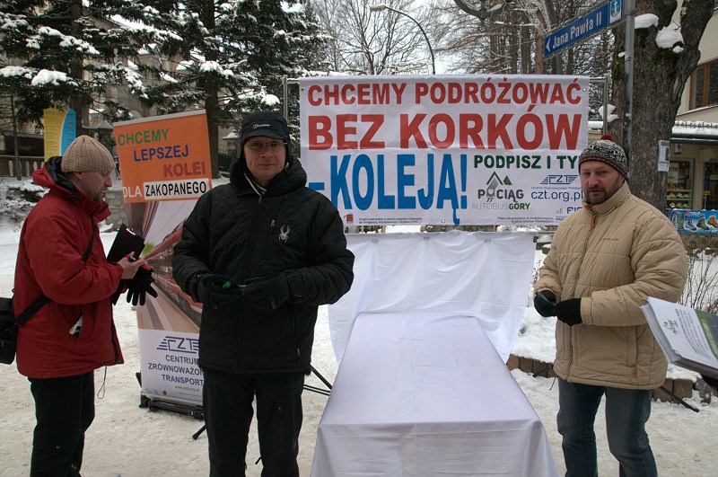 Szybka kolej oraz przywrócenie transportu publicznego na Podhalu pomogą obniżyć ilość samochodów przyjeżdżających w sezonie i pogodne weekendy. - Chcemy by w 2024 r. do Zakopanego 40% turystów przyjeżdżało pociągiem, 15% autobusem liniowym, 10% autobusem wycieczkowym, 2% rowerem, a tylko 33% samochodem (obecnie ponad 80% turystów przyjeżdża samochodem) - mówią organizatorzy akcji.