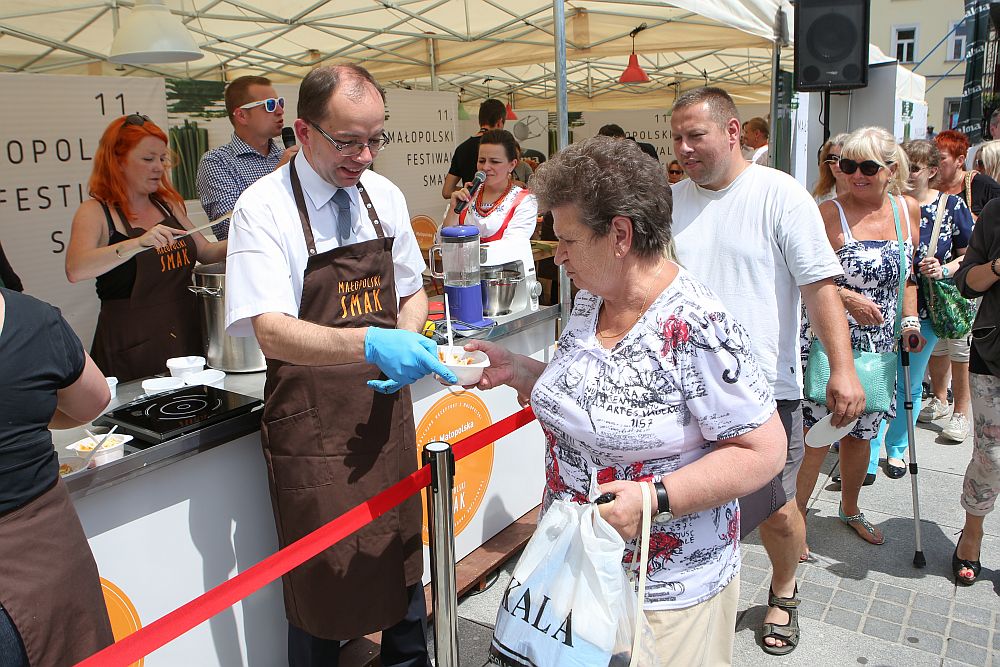 W trakcie imprezy prowadzono pokazy kulinarne - do gotowania, krojenia, mieszania zaproszono władze Miasta. Burmistrz Nowego Targu wraz ze swoją zastępczynią częstowali mieszkańców tym, co pod okiem kucharzy - przygotowali.