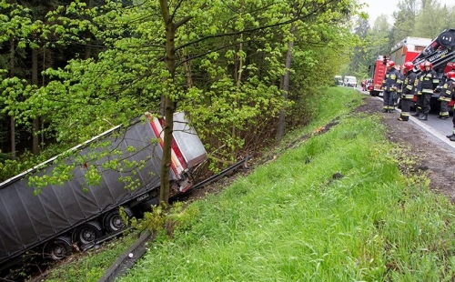 Wypadek miał miejsce w środę na prostej, która prowadzi w kierunku dwupasmówki w Chabówce. Po wyjściu z zakrętu tir wpadł w poślizg, zjechał z jezdni, przełamał barierki i wjechał w miejsce, gdzie wypłaszczenie nagle się urywa i stromo prowadzi w dół doliny potoku. Samochód zjechał po zboczu i zatrzymał się na drzewach.