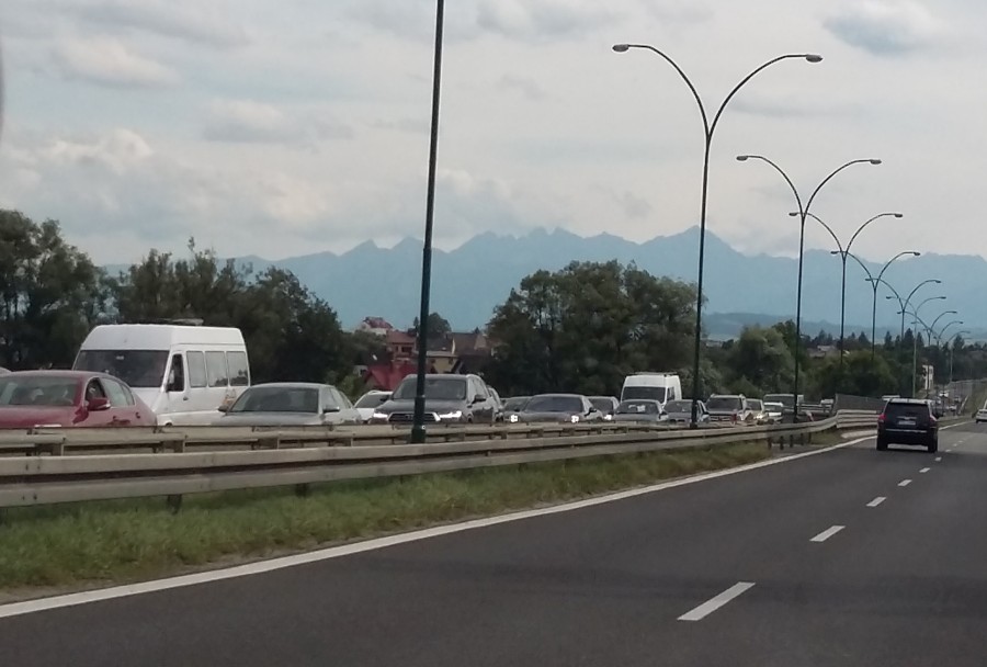 Duży korek utworzył się też przy wyjeździe ze Szczawnicy. Samochody stoją do ronda w Krościenku.