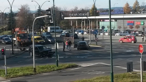 NOWY TARG. Na skrzyżowaniu Al. Tysiąclecia i ul. Kilińskiego koło dworca autobusowego zderzyły się dwa samochody osobowe - Nissan i Audi. Kierowca jednego z samochodów został zabrany do szpitala.