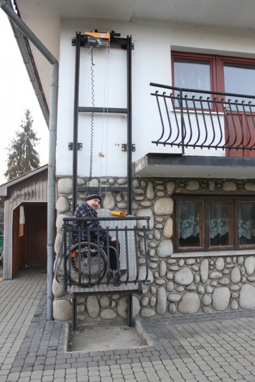 Odśnieżarka to nie jedyny jego wynalazek. Skonstruował też windę balkonową dzięki której szybko przenosi się z podwórka na balkon i do swojego pokoju.