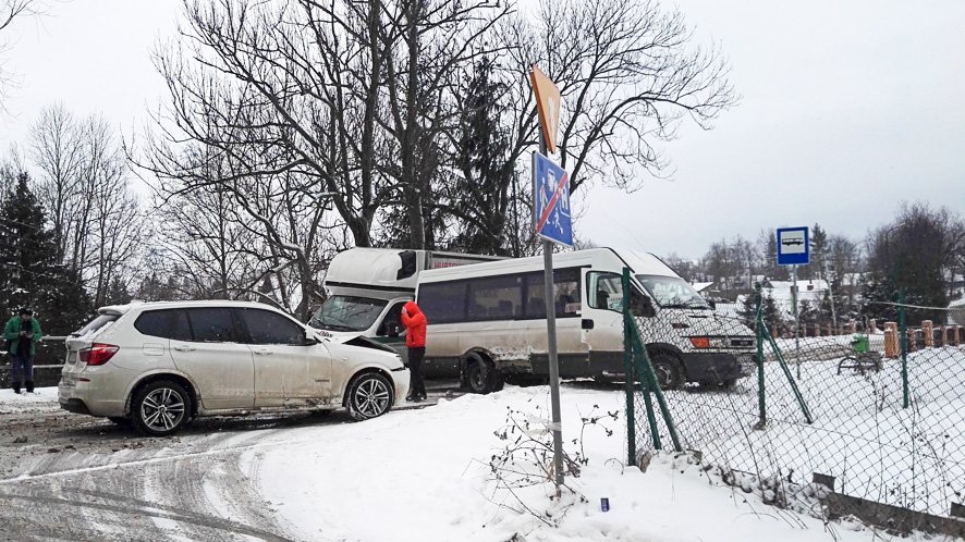 Do jednej z takich kolizji doszło na Ciągłówce w Zakopanem, gdzie bus zderzył się z samochodem terenowym.