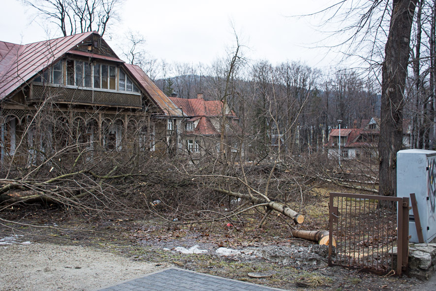 Tak jest na przykład na ulicy Piłsudskiego, gdzie właściciel usunął wszystkie drzewa oddzielające jego działkę od drogi oraz na ulicy Jagiellońskiej, gdzie wycięto wszystkie drzewa znajdujące się na działkach obok dwóch mocno zniszczonych budynków.