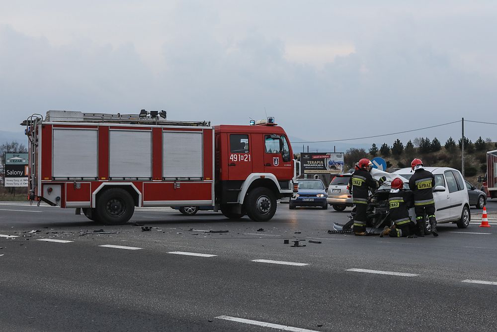Pod wieczór zderzyły się tu dwa samochody osobowe. Wygląda na to, że scenariusz wypadku był taki jak zazwyczaj - doszło do niego, gdy jeden z samochodów wyjeżdżających z ul. Szaflarskiej próbował włączyć się do ruchu na zakopiance.