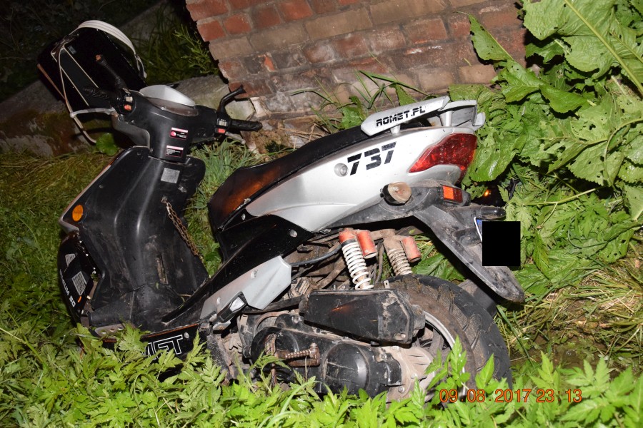 Do wypadku doszło minionej nocy przed godz. 23. - Jechał bez kasku i wymaganych uprawnień - informuje podkomisarz Roman Wolski, rzecznik prasowy Komendy Powiatowej Policji w Nowym Targu. - W wyniku tego zdarzenia mieszkaniec Skrzypnego został przetransportowany śmigłowcem do szpitala w Krakowie z uwagi na obrzęk mózgu. W rozmowie z lekarzem ustalono ponadto, iż kierował motorowerem będąc w stanie nietrzeźwości - miał 2,35 promila - dodaje.