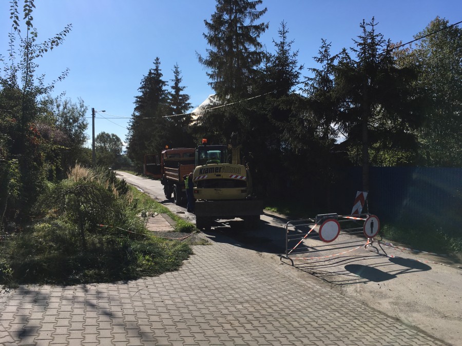 Na miejscu są robotnicy, którzy zajmują się naprawą drogi, ale nie wiadomo jak długo potrwają prace.