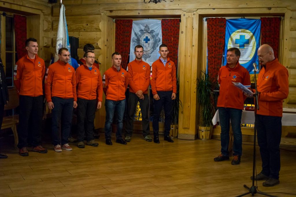 Najważniejszym punktem wieczoru było ślubowanie nowo przyjętych ratowników - w tym roku przybyło ich sześciu, dodatkowo trzech zostało nominowanych na stopień starszego ratownika górskiego.Tegoroczne uroczystości były także okazją do świętowania 60-lecia Sekcji Operacyjnej Krościenko.