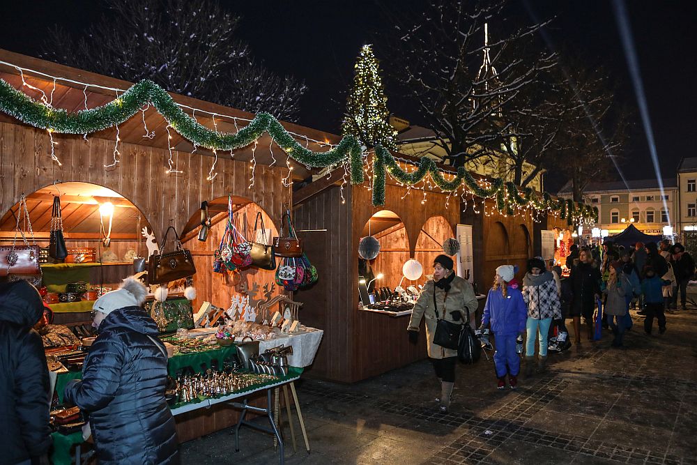 Choinkę obok Ratusza ostatnimi ozdobami przystroił burmistrz Grzegorz Watycha w towarzystwie Klaudii Waksmundzkiej z zespołu Mali Świarni. Oboje wyjechali na wysokość kilku metrów w koszu podnośnika. Potem przy gromadnych odliczaniu "10...9...8...7..." zapalono światełka.