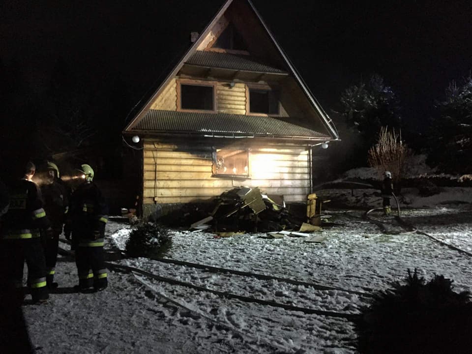 Pożar wybuchł w drewnianym budynku przy ul. Potok w rejonie zwanym "Działki". W akcji gaśniczej udział brało 9 zastępów straży pożarnej - JRG i OSP. Trwa szacowanie strat, które będą raczej duże, bowiem ogień strawił cale wnętrze budynku.