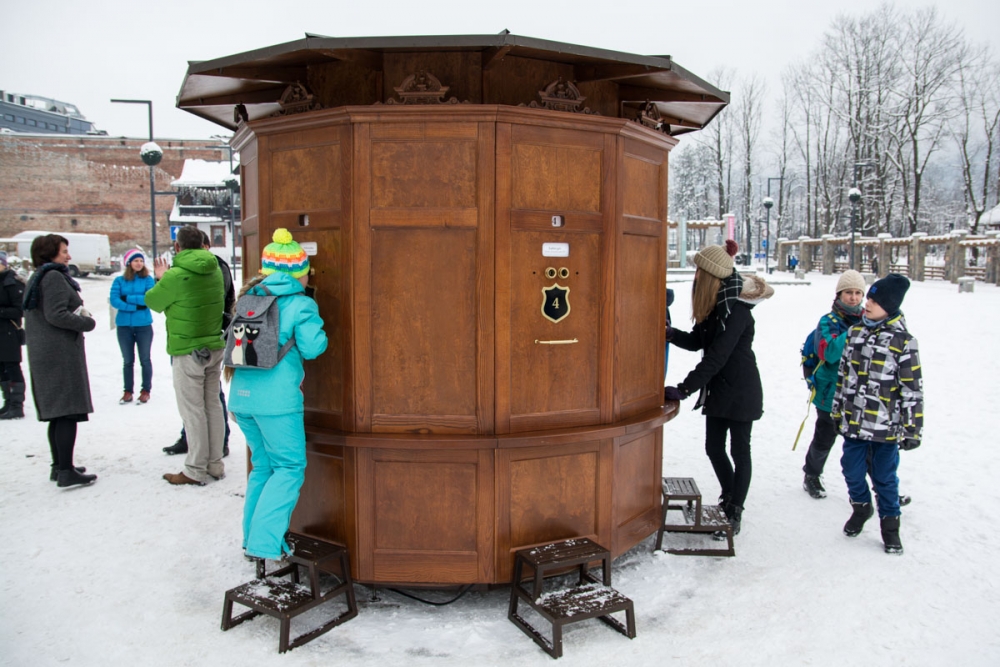 Tajemnicza drewniana konstrukcja zachęca młodych turystów i mieszkańców do zatrzymania się i zajrzenia przez okulary historii na przedwojenne fotografie Podhalańskie fotografie. Fotografie zostały pogrupowane, a żeby zobaczyć wszystkie trzeba zaglądać w specjalne okulary umieszczone dookoła fotoplastikonu.