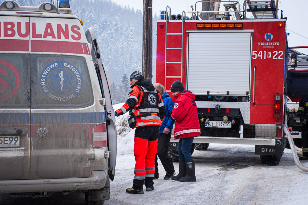 Obecna na miejscu straż pożarna próbuje ustalić przyczynę pożaru. Akcję gaśniczą utrudniało bardzo duże zadymienie.