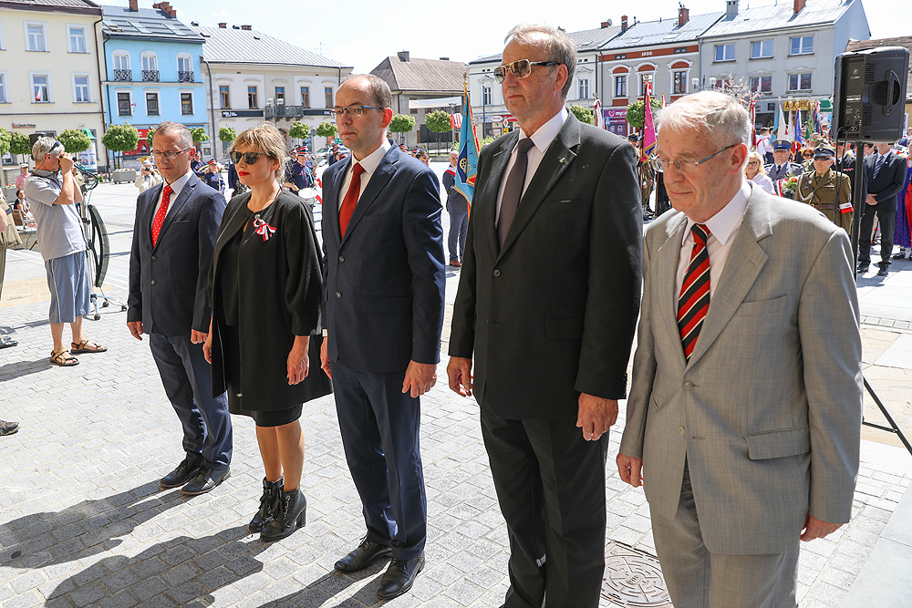 Po mszy uczestnicy uroczystości, prowadzeni przez liczne poczty sztandarowe i Miejską Orkiestrę Dętą, przemaszerowali na Rynek. Odegrano i odśpiewano Hymn Polski i Rotę. Pod Ratuszem okolicznościowe, patriotyczne przemówienia, wygłosili m.in. starosta nowotarski Krzysztof Faber i przedstawiciele lokalnych organizacji i stowarzyszeń. Następnie delegacje, w tym miejska z burmistrzem Grzegorzem Watychą na czele, złożyły wiązanki kwiatów pod tablicą pamiątkową.
