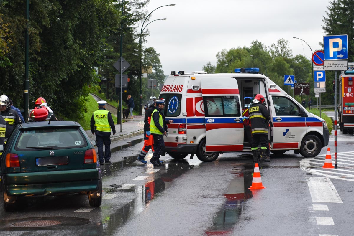 Dwie osoby odniosły obrażenia, karetka przetransportowała je do szpitala. Policja bada przyczyny zdarzenia.