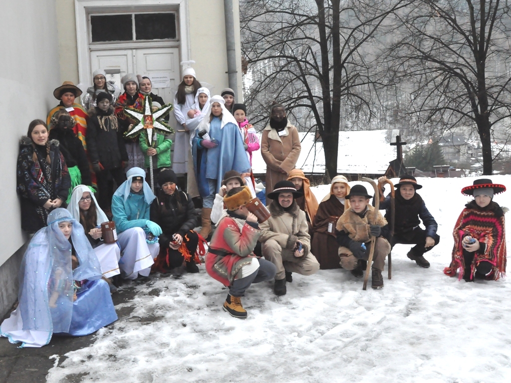Kolędnicy misyjni - dzieci ze szkół podstawowych - dzielą się z mieszkańcami Szczawnicy Dobrą Nowiną o przyjściu na świat Zbawiciela oraz zbierają datki na potrzeby misjonarzy posługujących w najbiedniejszych krajach świata. Z kolędą udało się w tym roku sześć grup.