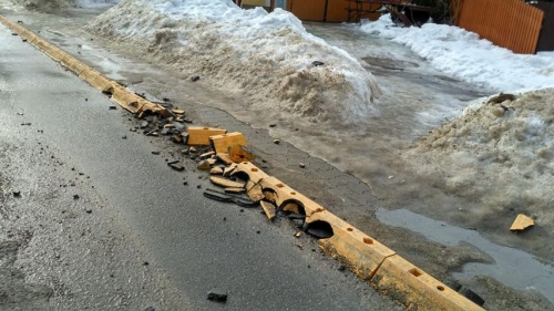 - Ile kosztowały progi założone na ul. Solidarności, które zostały zniszczone w trakcie odśnieżania? Mieszkańcy zgłaszali swoje wątpliwości co do ich trwałości już na etapie ich montowania - zauważył radna prezentując zdjęcia. Jedno z nich - poniżej.