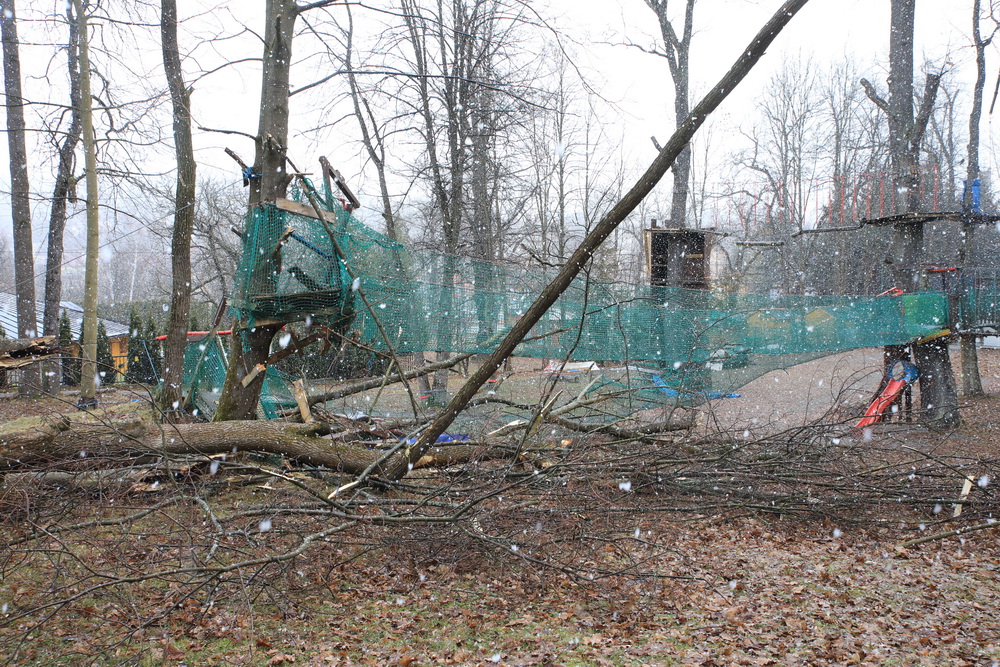 Wiatr połamał w uzdrowisku co najmniej kilkanaście drzew. Przy Deptaku Zdrojowym przewracające się drzewa uszkodziły lampę uliczną oraz urządzenia w pobliskim parku linowym. Najwięcej połamanych drzew jest w Parku Zdrojowym.