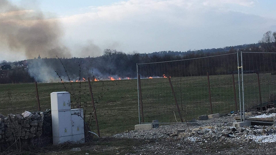 NOWY TARG. Strażacy co rusz wyjeżdżają do pożarów suchych traw. Podpalane m.in. przez właścicieli łąki płoną w różnych rejonach na Podhala. Na zdjęciu pożar traw w rejonie os. Bohaterów Tobruku.