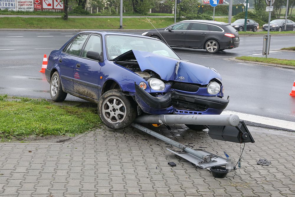 Kierująca toyotą kobieta zjechała z jezdni, skosiła przydrożny znak i uderzyła w sygnalizator świetlny. Rozbiła auto, ale na szczęście nic poważnego jej się nie stało. - Została ukarana mandatem - informuje mł. asp. Dorota Garbacz z Komendy Powiatowej Policji w Nowym Targu.