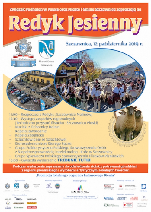 W sobotę w Szczawnicy odbywał się będzie doroczny Redyk Jesienny, w ramach którego zaplanowano wiele wydarzeń. Informacja o nich na plakacie: