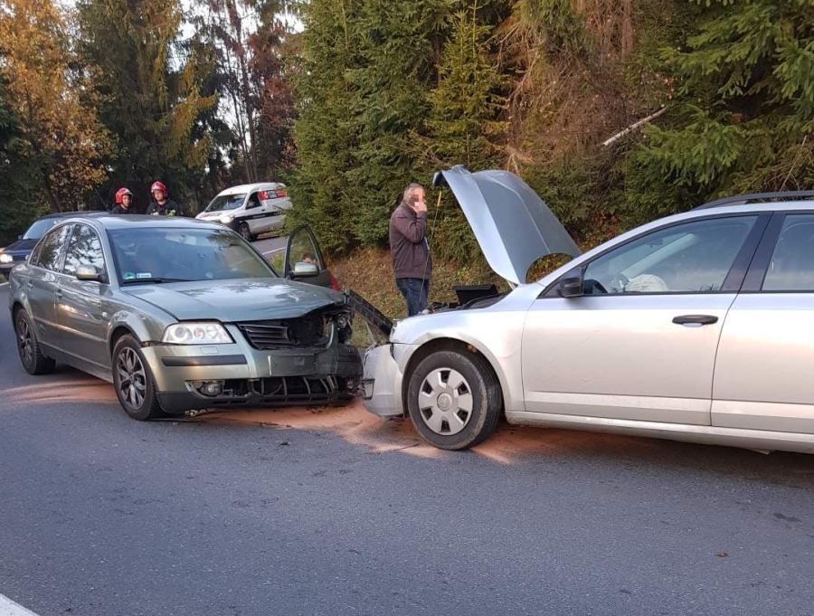 Na miejsce przyjechali strażacy, którzy zajęli się neutralizacją płynów, jakie wyciekły z aut. Szczegóły wypadku wyjaśnia policja.