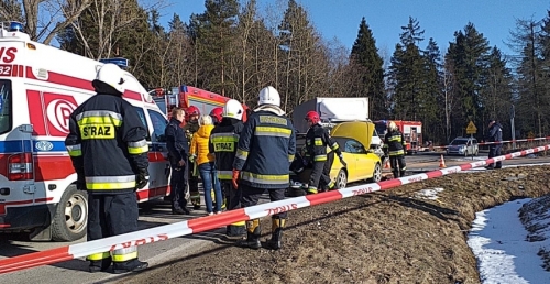 Trzy samochody, w tym jeden dostawczy, zderzyły się na skrzyżowaniu dróg na Trybsz, Nową Białą i Białkę Tatrzańską.
