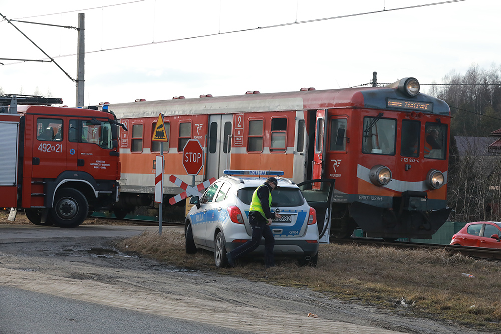 Samochód osobowy wjechał pod nadjeżdżający pociąg. Na szczęście, w tym miejscu pociągi zwalniają. Skład tylko musnął samochód w bok. Nikomu nic poważnego się nie stało.