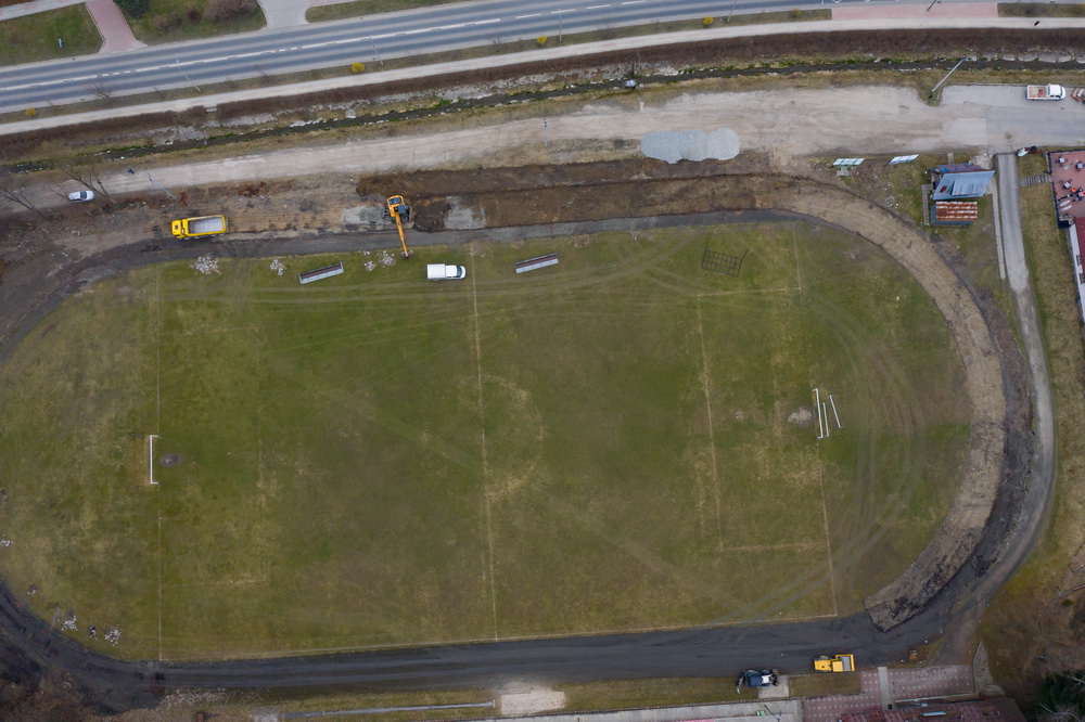Przypomnijmy, iż już od jakiegoś czasu trwają tu prace przy budowie nowej bieżni lekkoatletycznej i przebudowie budynku klubowego. Teraz nadszedł czas na murawę. Główny zakres prac obejmuje wymianę naturalnej trawy na stadionie na syntetyczną. Do wykonawcy należeć też będzie m.in. montaż nowych bramek, dostarczenie bramek przenośnych, montaż kabin dla zawodników rezerwowych, piłkochwytów, oświetlenia, budowę ogrodzenia czy przebudowa kanalizacji deszczowej i sanitarnej oraz odwodnienia. Planowany termin zakończenia prac to koniec listopada tego roku.