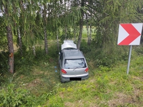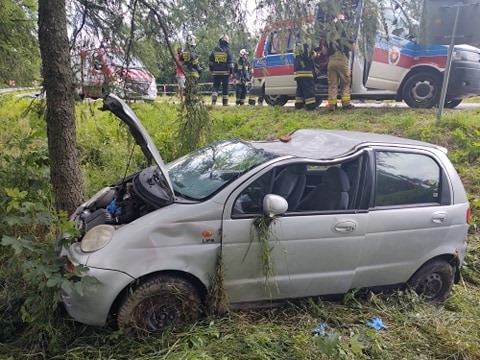 Kierowca samochodu osobowego wypadł z drogi i rozbił się na drzewie.