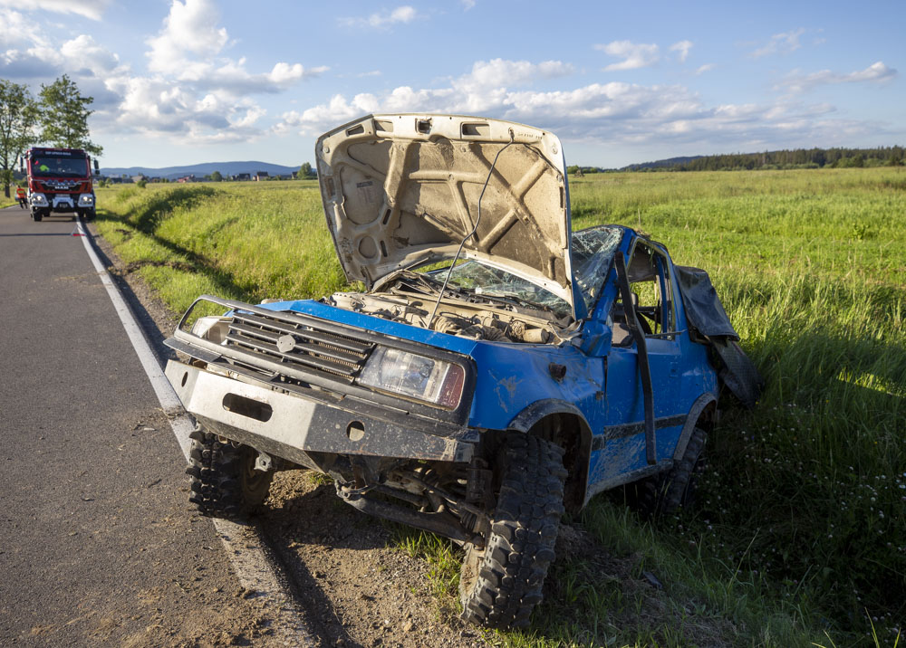 Na krótki czas droga droga została zablokowana. Po postawieniu pojazdu na koła - ruch odbywa się już wahadłowo.